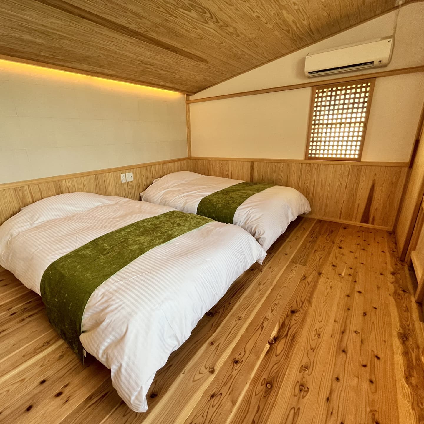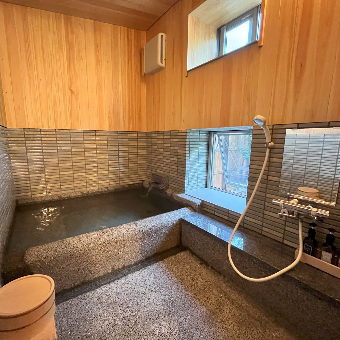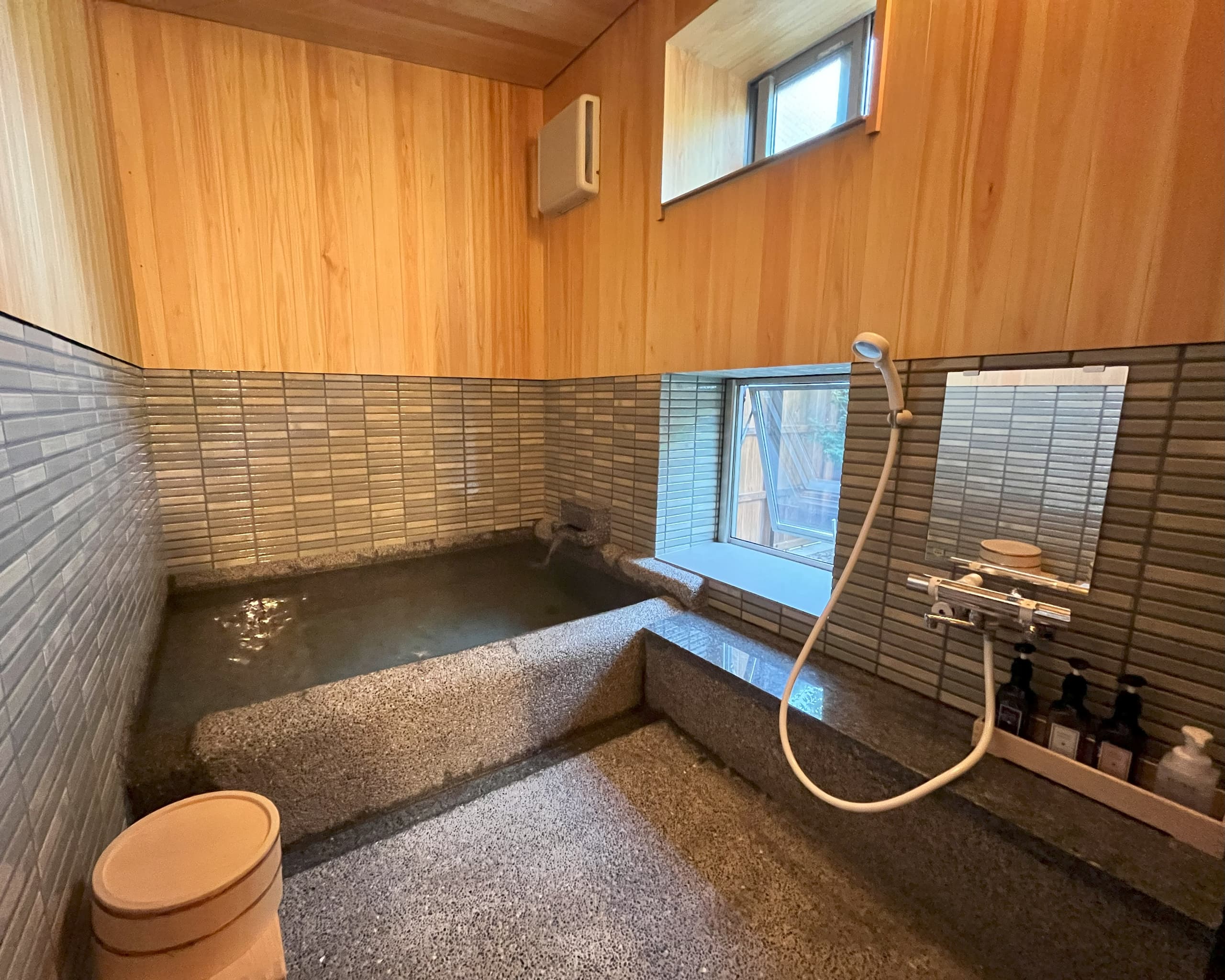 1階にダイニング(食事室)・小上がり和室・脱衣洗面室・浴室(貸切温泉)・トイレ2ヶ所、2階にホール・寝室とトイレ1ヶ所をご準備し、ご家族やグループでのご宿泊に適しております。