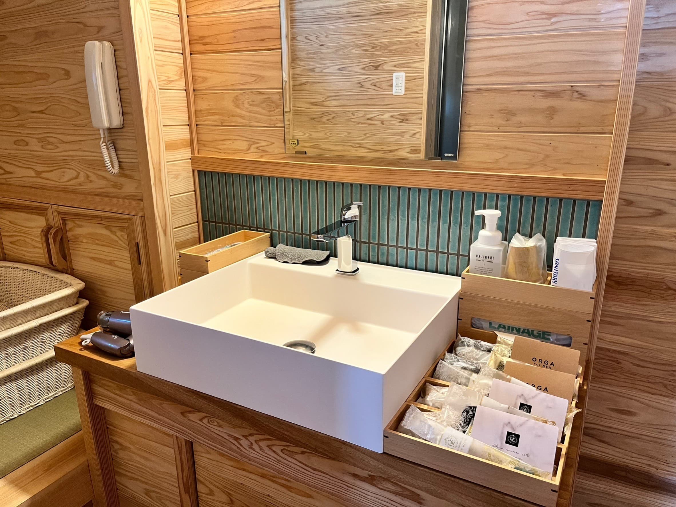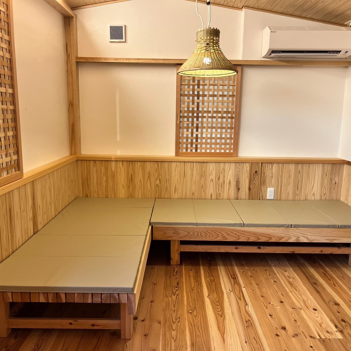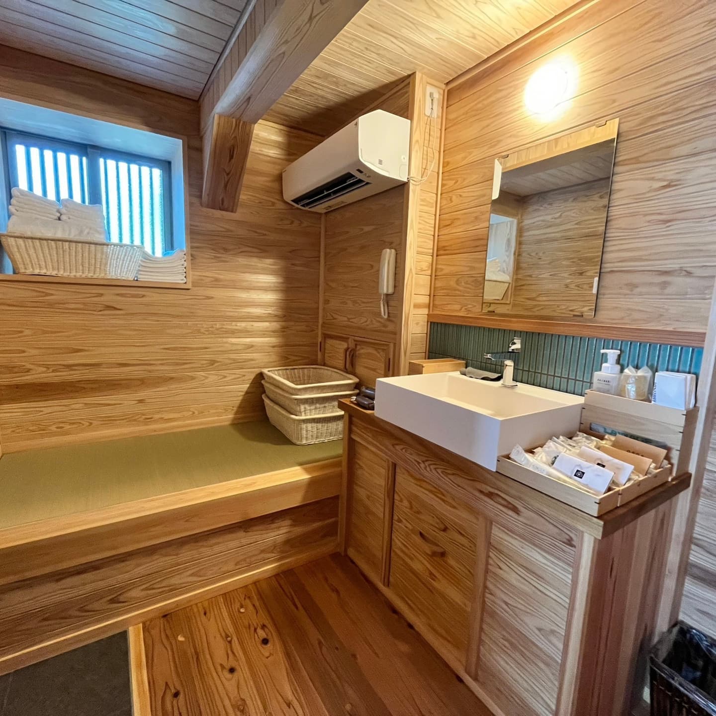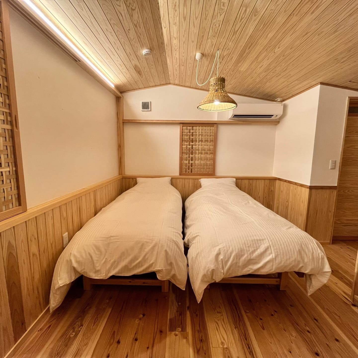 1階にダイニング(食事室)・小上がり和室・脱衣洗面室・浴室(貸切温泉)・トイレ2ヶ所、2階にホール・寝室とトイレ1ヶ所をご準備し、ご家族やグループでのご宿泊に適しております。